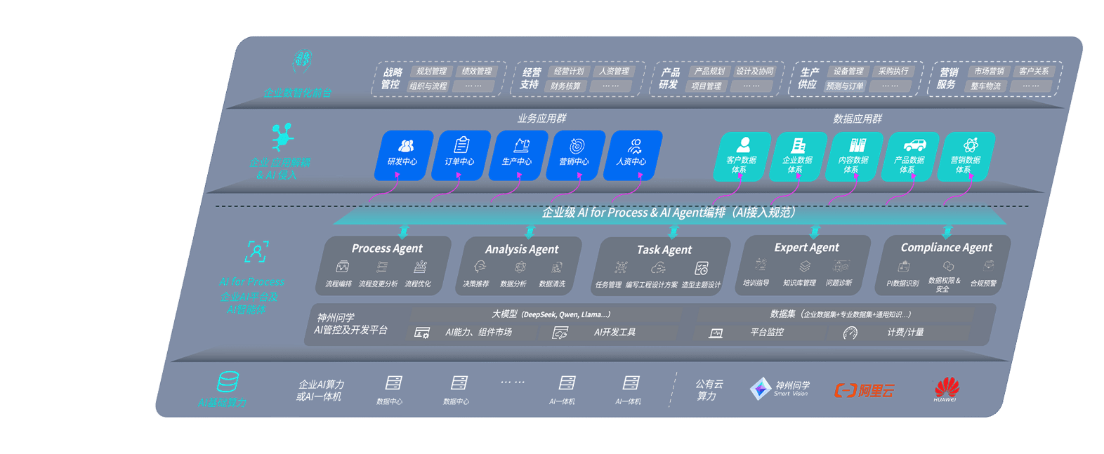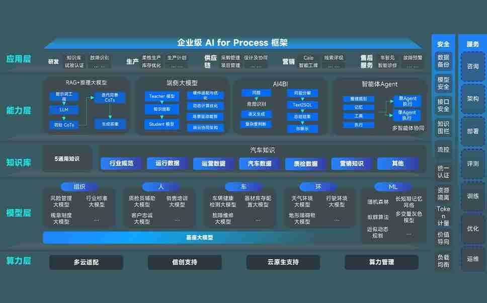 端到端的一站式AI工作空间深度融合了从企业战略规划到日常经营的全流程业务板块,,定向解决车企内部领域多、、、部门多、、、链条长、、、场景碎片化等难题,,,,支持车企快速构建以AI为核心的生产力写作体系,,,实现任务执行与AI能力的无缝集成与交互
